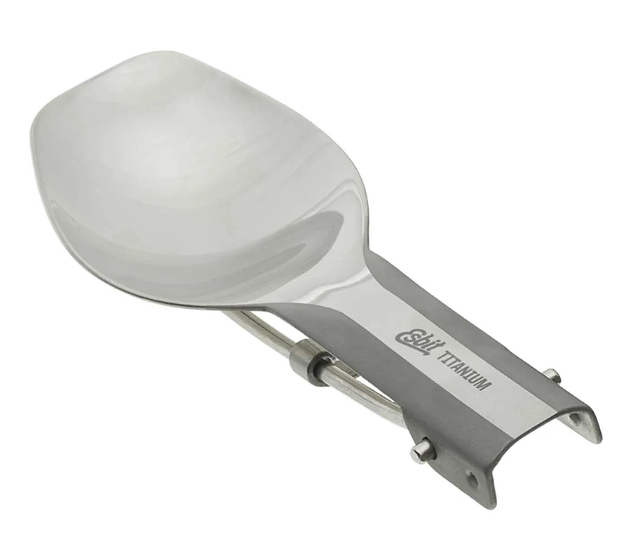 Ein Klapp-Löffel aus Titan. Ultraleicht, geschmacksneutral, mit einem sehr schön ausgeformten Mundteil. Wir haben ja ein recht grosses Sortiment an Titan-Bestecken – diese Teile von Esbit mussten wir aber schon allein wegen der Optik noch zusätzlich ins Programm nehmen…