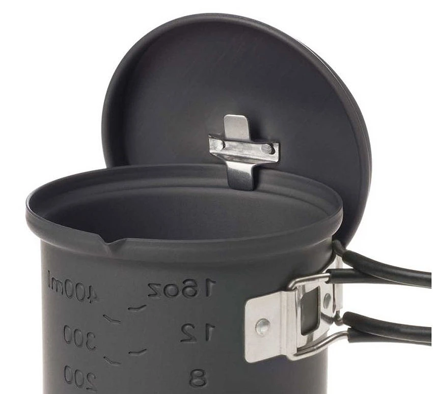 Nicht nur auf den long trails der USA sehr beliebt, auch ein Lieblingsteil bekannter deutscher Extrem-Wander-Blogger: ein sehr leichter Topf für die Nutzung mit Brennstofftabletten, das Volumen ist für die üblichen Trekkinggerichte oder nur für ein Heissgetränk bei einer Pause.