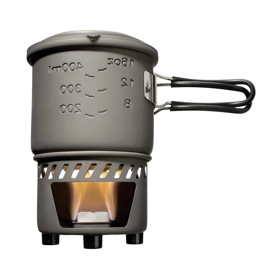 Volumen: 585 ml max, real nutzbar ca. 500 ml (sonst schlabbert mensch beim Kochen oder Rühren) - 1 Satz Brennstofftabletten (4 Stück) im Lieferumfang. Sehen Sie für Nachschub bitte bei Esbit Brennstofftabletten oder Firedragon