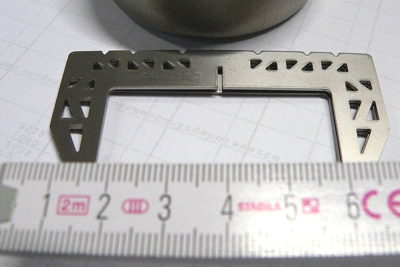 Ultraleichter Titanium Cross Stand Topfhalter. Hier in der Version 2 – etwas hochbeiniger als die Version 1, und leichter. Hier hat Evernew wohl besonders an die Nutzer „des Originals aus Schweden… 😉 “ gedacht – Die ältere Version brauchte mit dem Trangia etwas, bis die volle Leistung „ansprang“… .
