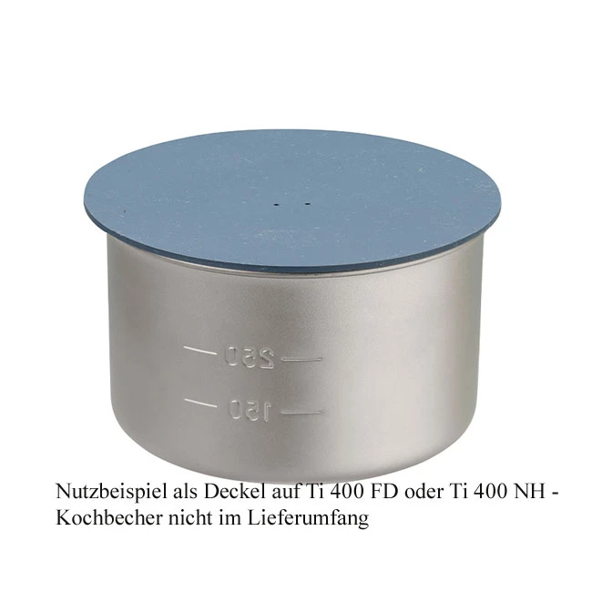 - Kann auch als Auflagedeckel fĂĽr Brennstoffersparnis beim Kochen im Ti 400 FD oder Ti 400 NH Kochbescher genutzt werden
