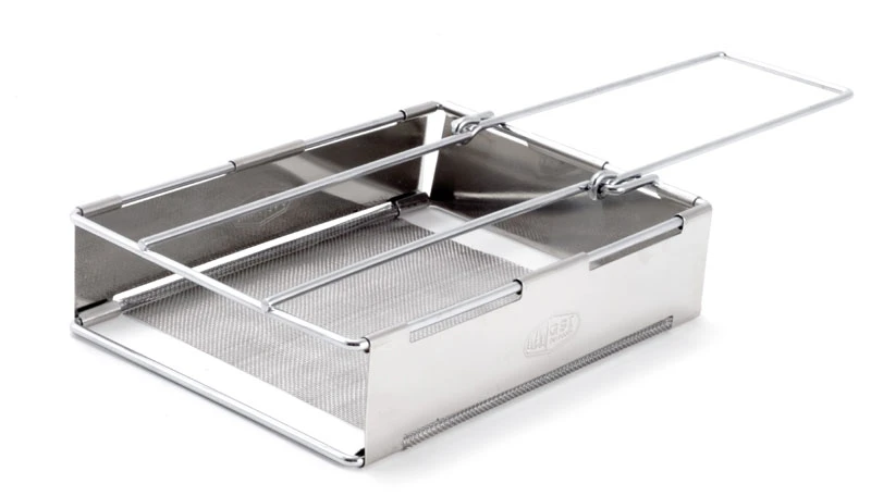 Ein in sich zusammen klappbarer Toast-Aufsatz in ansprechender Optik fĂĽr optionale Gaskocher oder offene Feuer.
