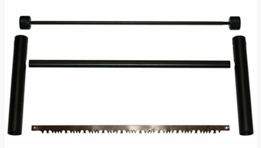Eine leichte Spannsäge mit kompaktem Packmaß – zerlegt hat die Säge Aussehen und Packmß einer Aluminiumröhre mit 41.5 cm Länge und 2.5 cm Durchmesser.