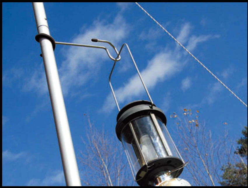 Ein geniales Teil, mit dem Laternen im Camp (bei Campern, Wohnmobilreisenden, Van-Tourern, Bushcraftern) an senkrechten Zeltstangen oder Tarpstangen oder Markisenstützen sicher, leicht in der Höhe verstellbar, aufgehangen werden können.