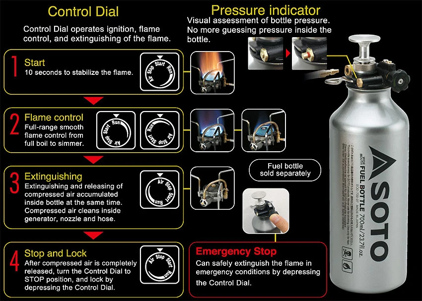 - Lieferumfang: Soto Kocher Muka Stove, Brennstoffpumpe, Universalwerkzeug, Packbeutel.