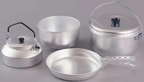 Ein Kochgeschirr für die Familie auf Camping-Urlaub oder eine Gruppe.