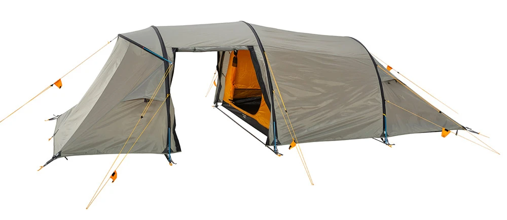 Das Intrepid 5 ist ein Zelt für bis zu fünf Personen mit zwei regengeschützten Eingängen und einer großen Apsis. Es hat drei durchgehende außenliegende Flachkanäle. Diese sind gut zu handhaben, bieten kaum Windwiderstand und minimieren so die Windgeräusche. Die zusätzliche Schlafkabine hat eine ausreichende Liegelänge für eine Person. Die Bügelhalterkonstruktion schafft mehr Platz in der Kabine, damit die gesamte Fläche der Kabine optimal nutzbar ist.